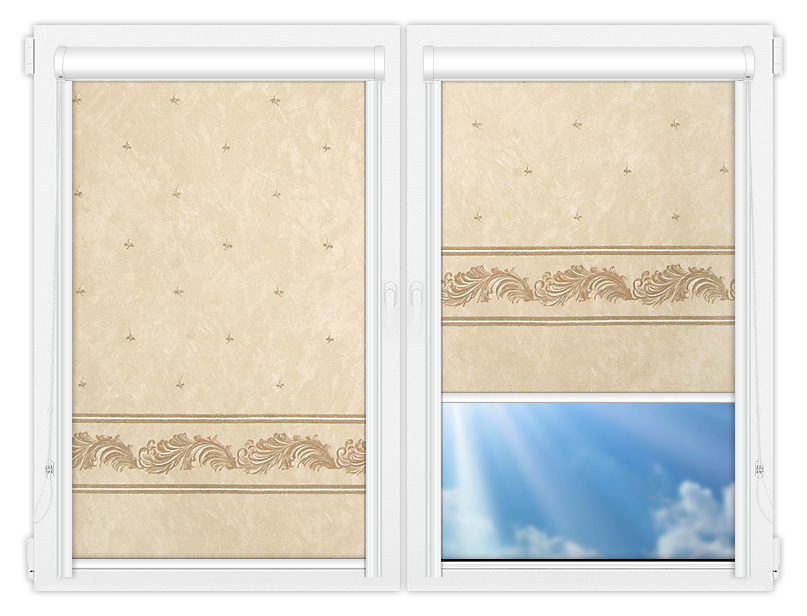 Рулонные кассетные шторы УНИ - Орнамент-блэкаут-бейж