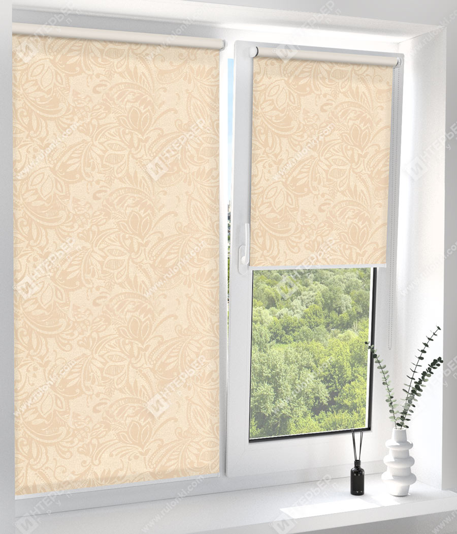 Комплектация: вал с тканью и цепью управления, фиксатор цепи и системы крепления - без сверления (на двусторонний скотч) или на саморезы. По умолчанию - цвет фурнитуры белый.