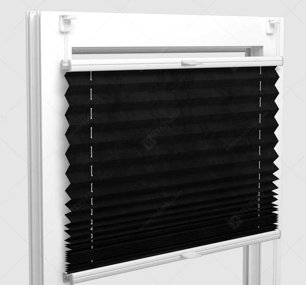 Шторы Плиссе - Краш перл черный на пластиковые окна